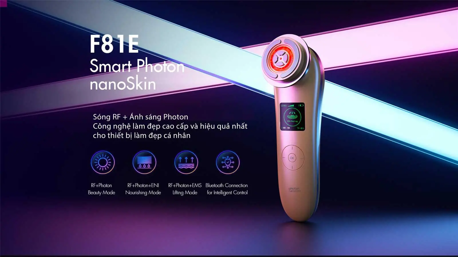 Máy nâng cơ trẻ hoá da 9in1 công nghệ nanoSkin Photon RF kết nối APP NanoTime F81E