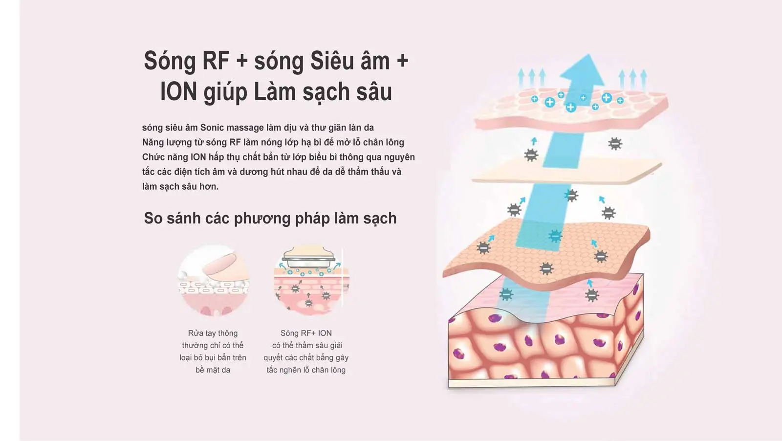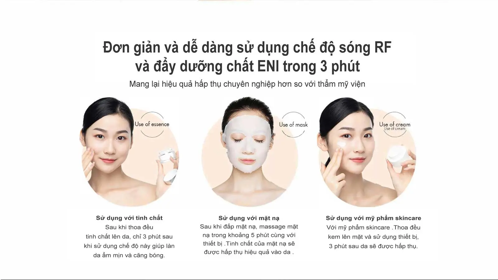 - Sonic massage làm tăng tốc độ lưu thông máu trên khuôn mặt và tăng cường khả năng hấp thụ.